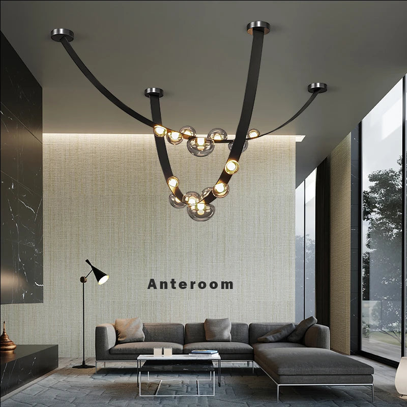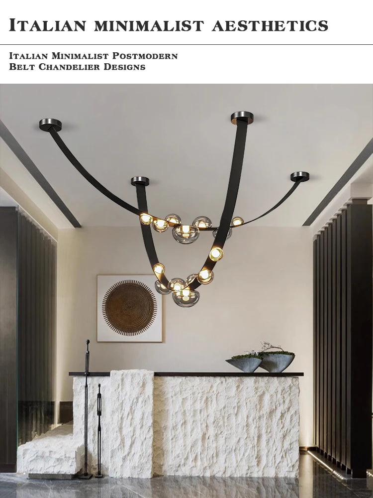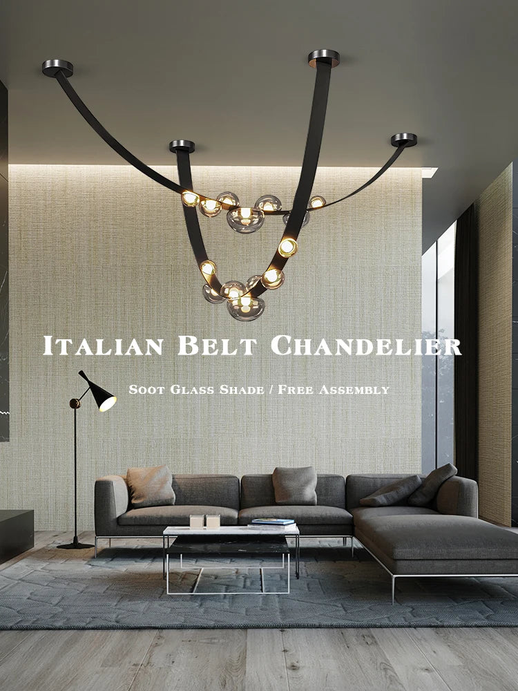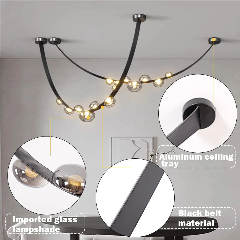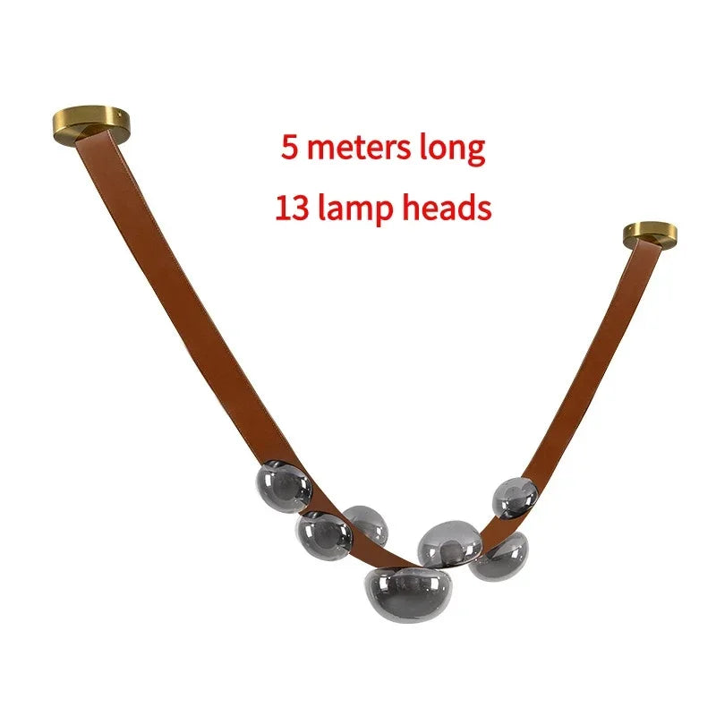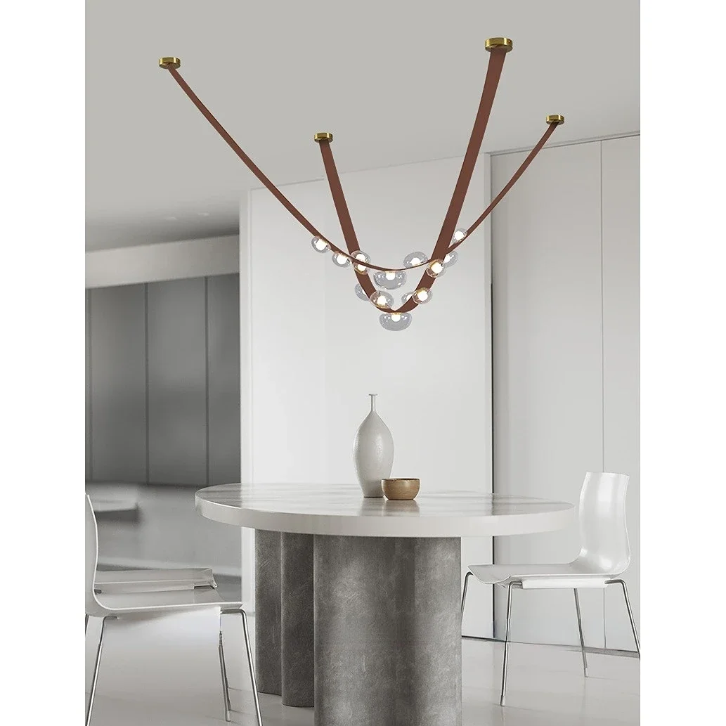 Leather Led Pendant Lamp Home Decor Chandeliers Lighting Suspension Luminaires for Living Room Villa Lustre Salon Design