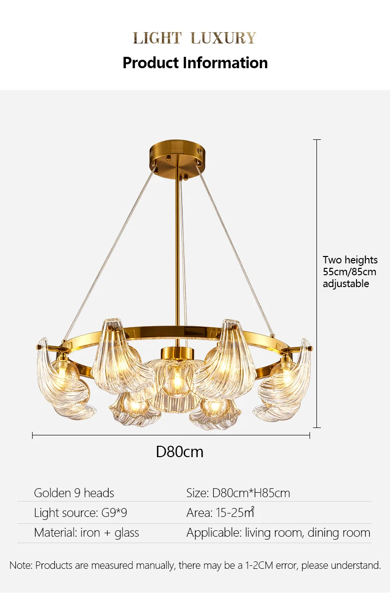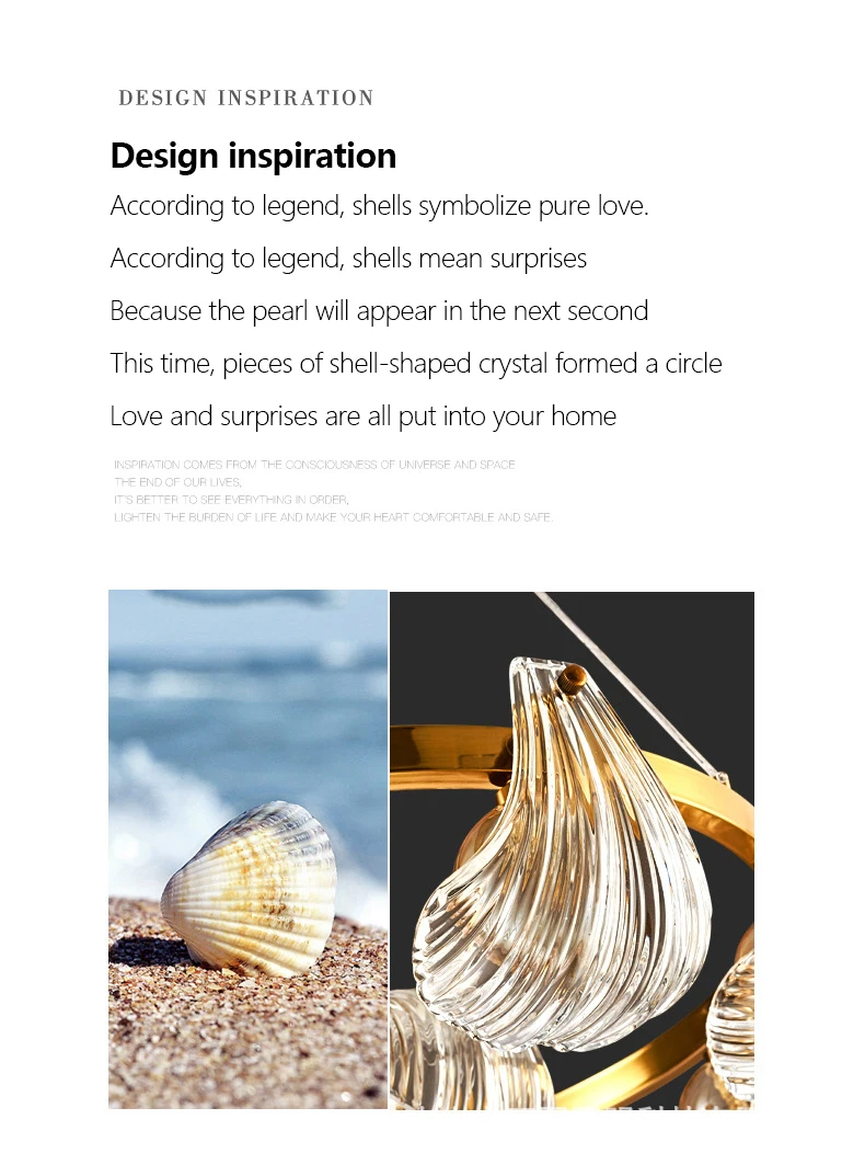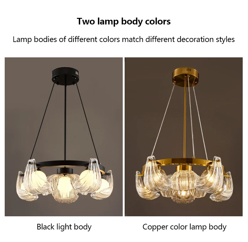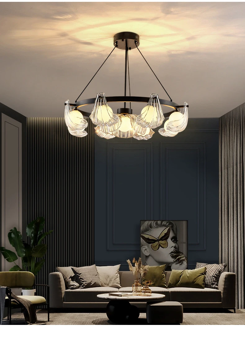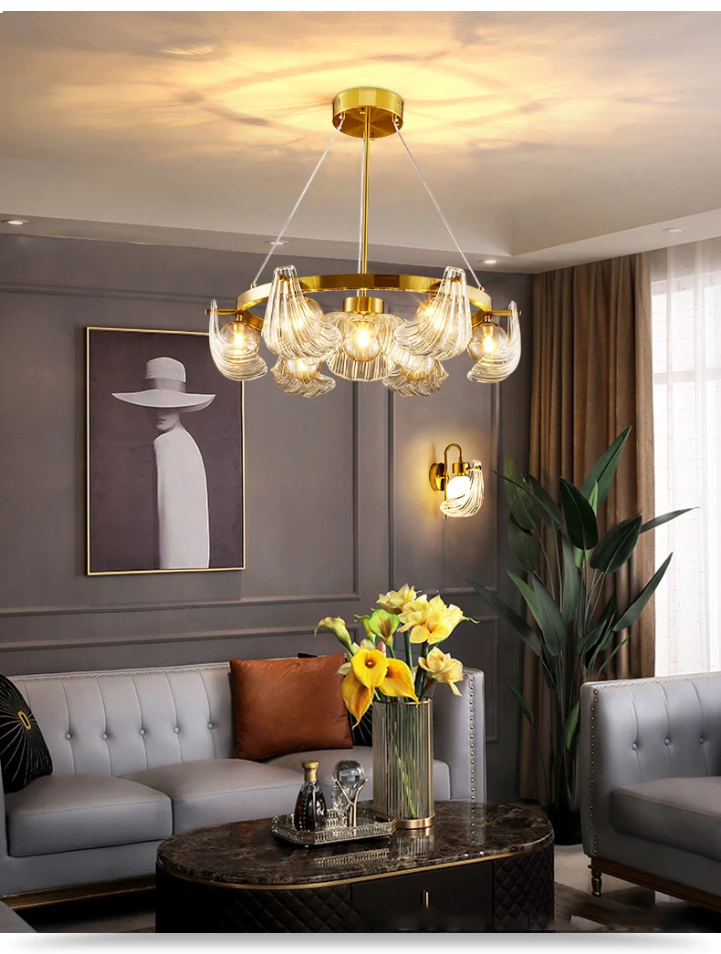 Luxury Shell Glass Chandeliers for Living Room Bedroom Creative LED Pendant Lamp Home Lighting Lustre Salon Suspension Luminaire