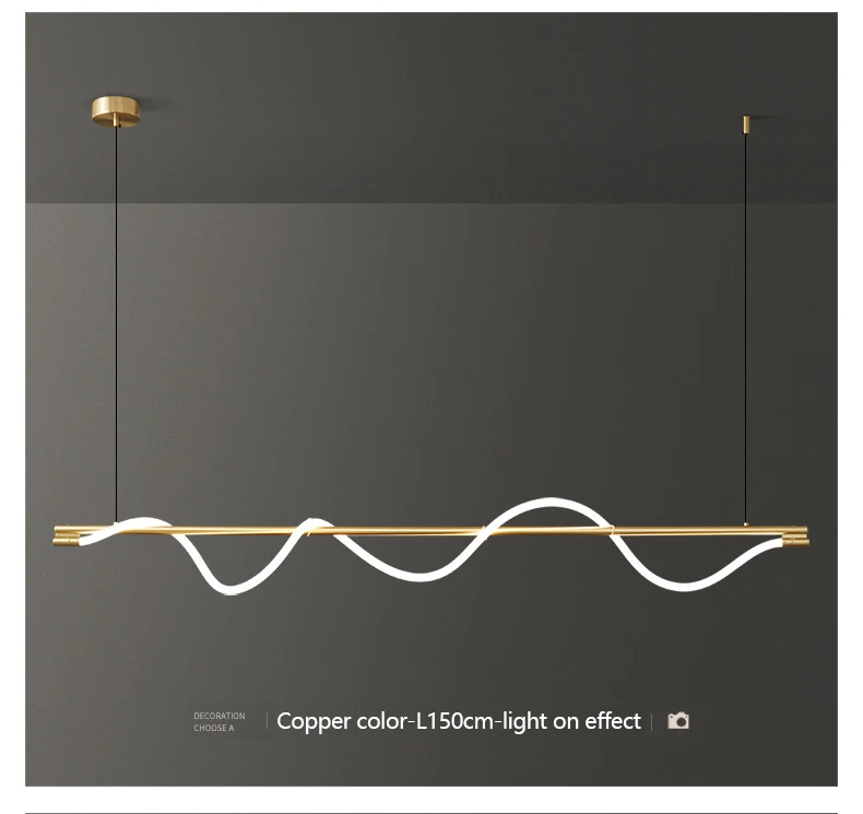 Modern Copper Minimalist Chandeliers Linear Design Strip Led Pendant Lamp for Living Dining Room Kitchen Island Lighting Fixture