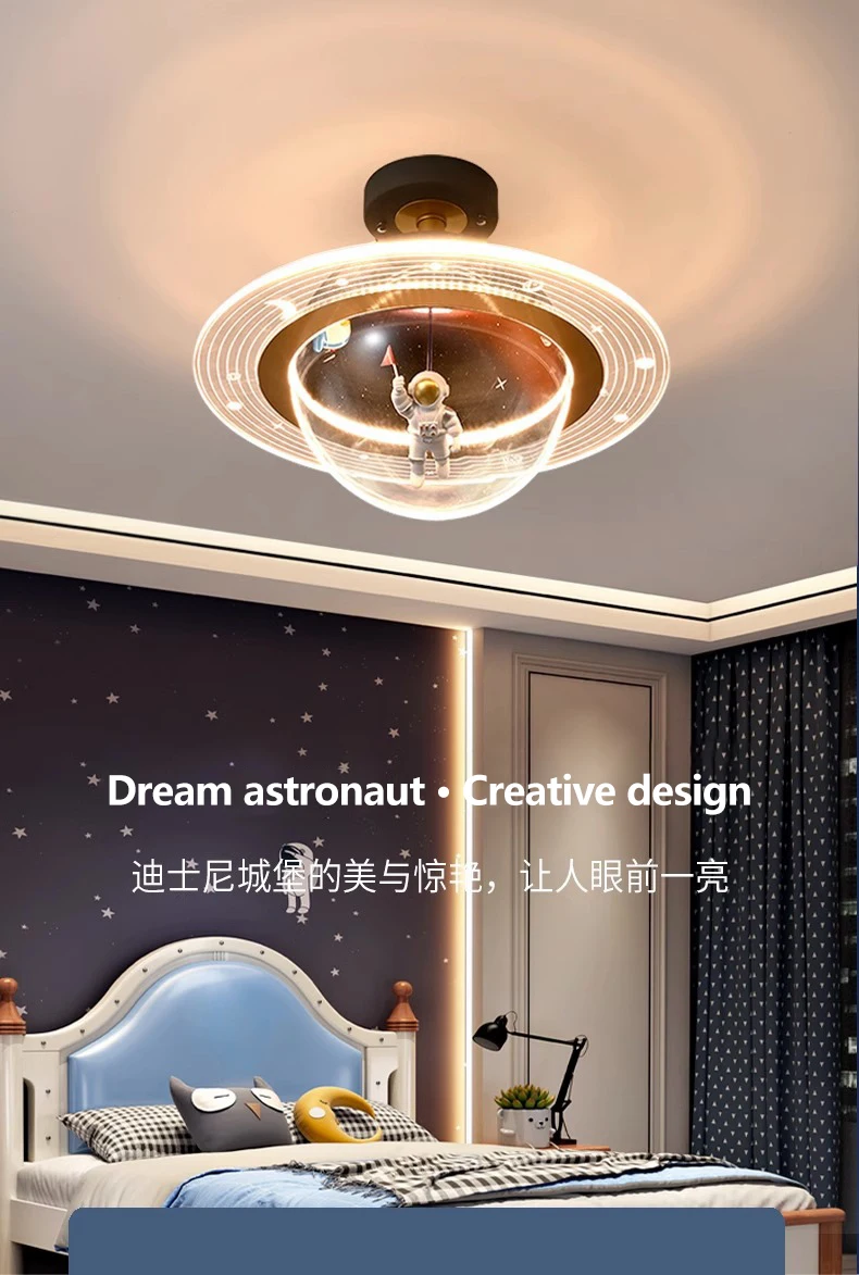 New Children's Room Ceiling Lamp Cartoon Space Astronaut Landing Moon Fashion Creative Led Lighting for Boy Bedroom Home Decor