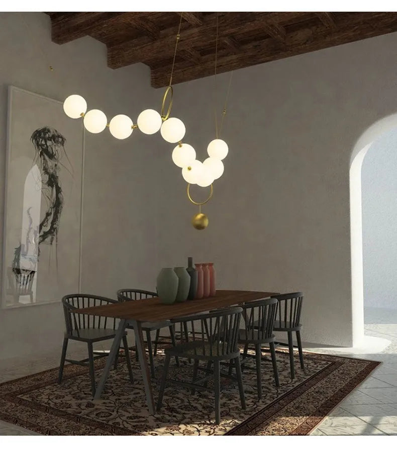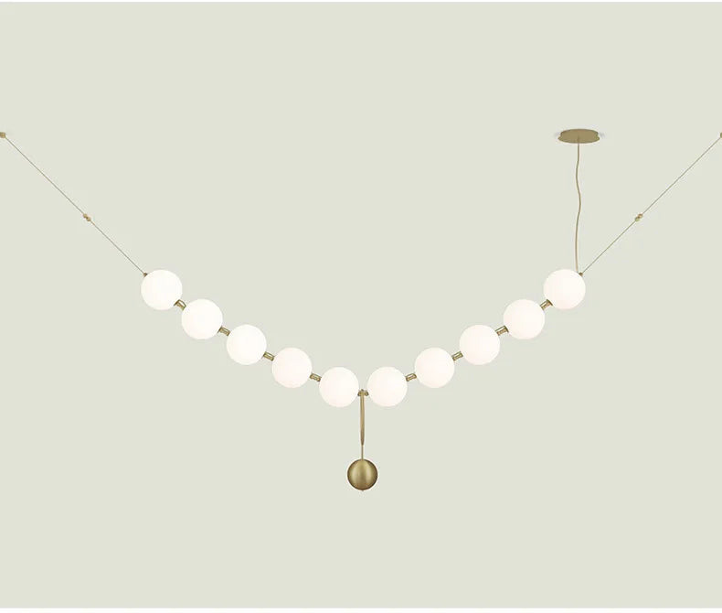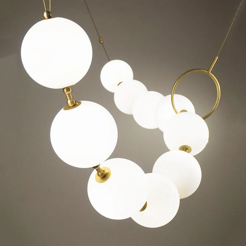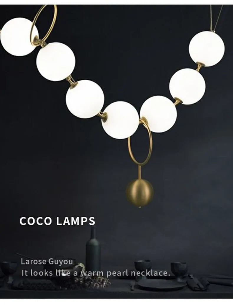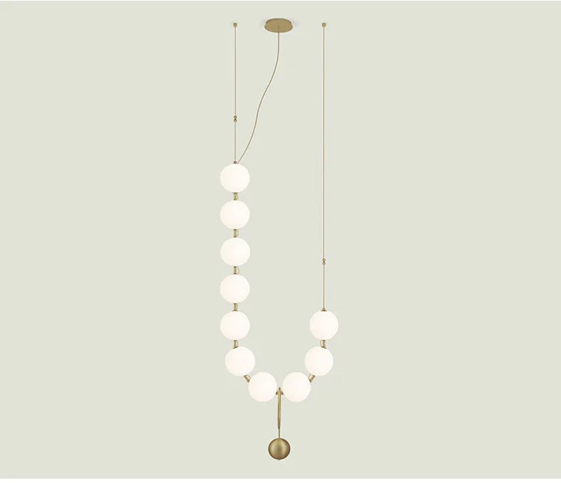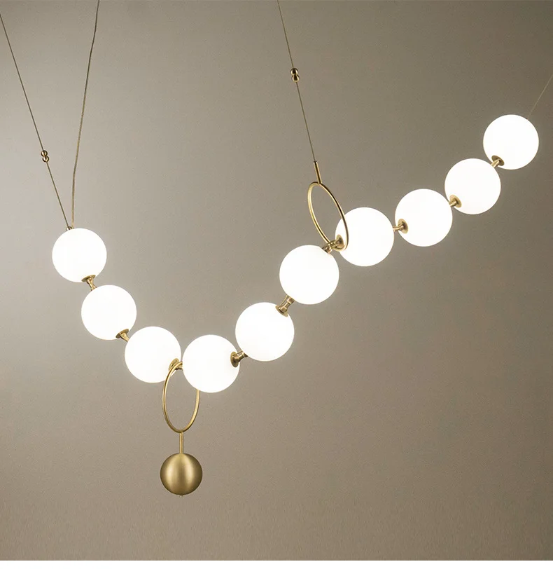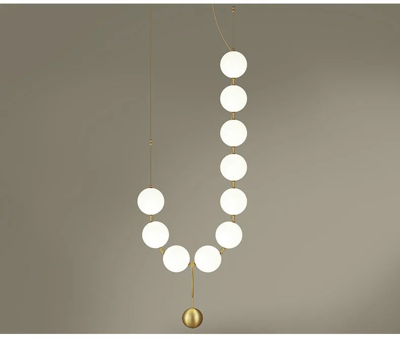Nordic Designer Chandeliers All Copper White Ball Long String LED Pendant Lamps for Hall Stairwell Dining Living Room Fixtures