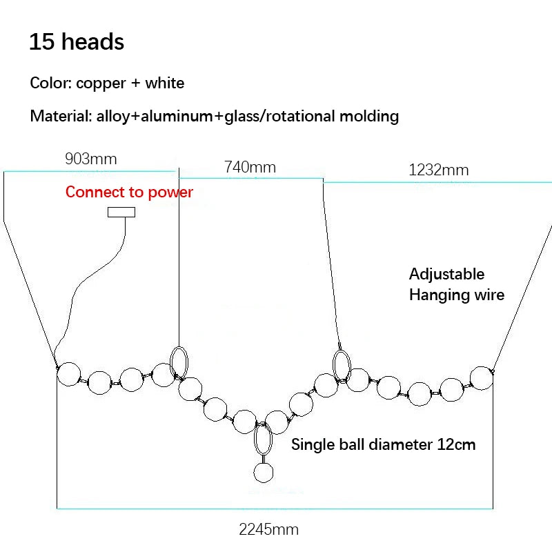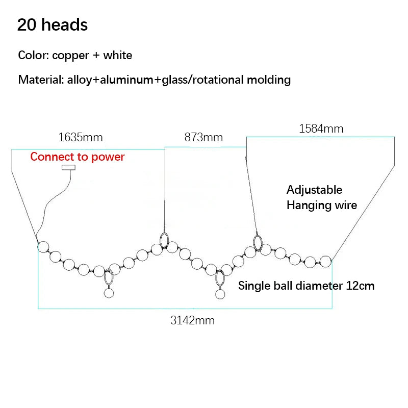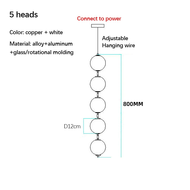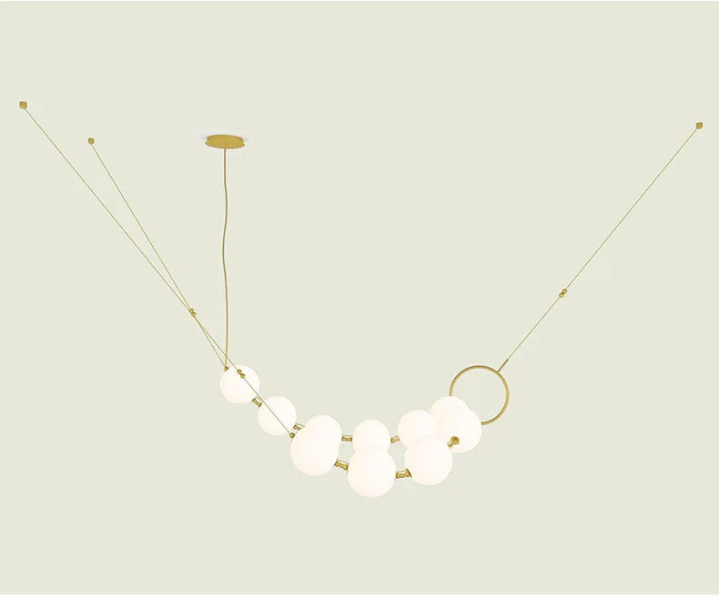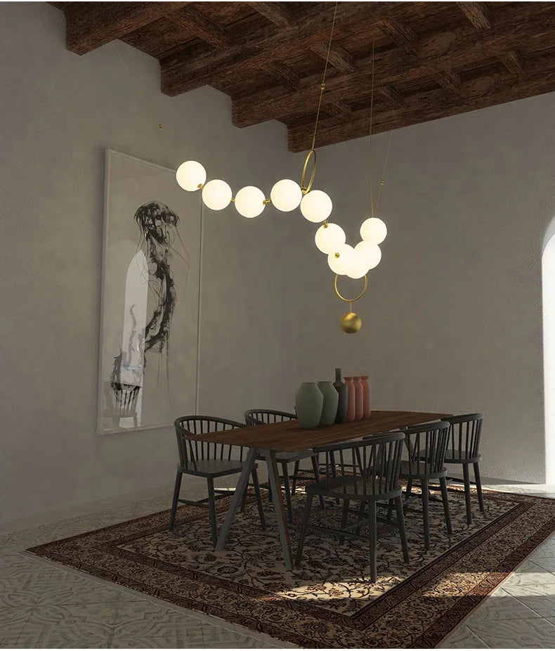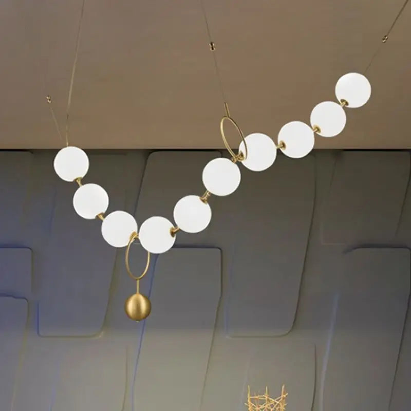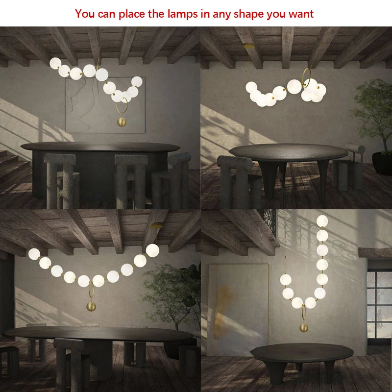 Nordic Designer Chandeliers All Copper White Ball Long String LED Pendant Lamps for Hall Stairwell Dining Living Room Fixtures
